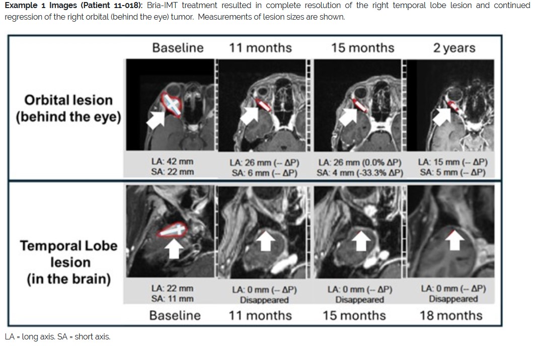 PHILADELPHIA and VANCOUVER, British Columbia, Jan. 28, 2026 (GLOBE NEWSWIRE) — BriaCell Therapeutics Corp. (Nasdaq: BCTX, BCTXW, BCTXZ, BCTXL) (TSX: BCT) (“BriaCell” or the “Company”), a clinical-stage biotechnology company developing novel immunotherapies to transform cancer care, releases new images highlighting resolution of metastatic breast cancer lesions in patients with orbital (eye), temporal lobe (brain), liver, and spinal involvement. Survival details on these and other select patients in its Phase 2 study, along with comparable populations, were previously reported.